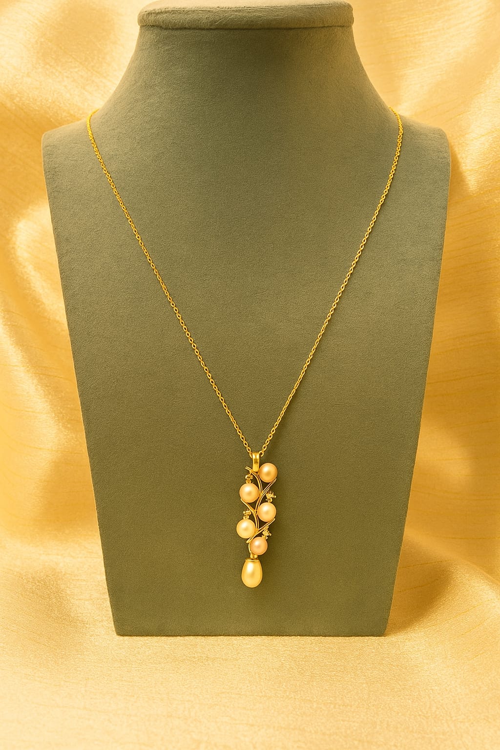 A beautiful pendant with 6 real pearls, shiny AD stones, and a gold-polished chain. Simple, elegant, and perfect for any occasion.